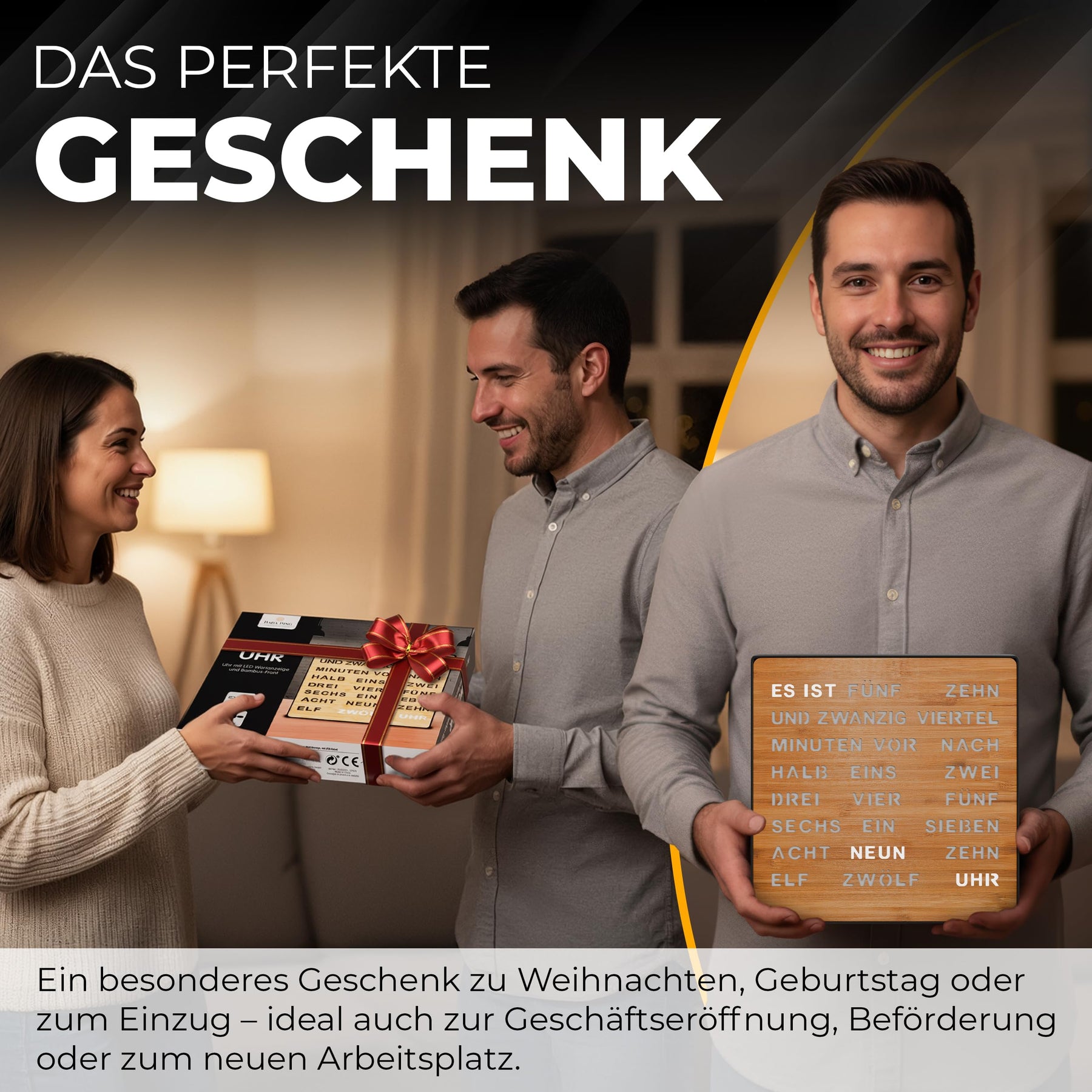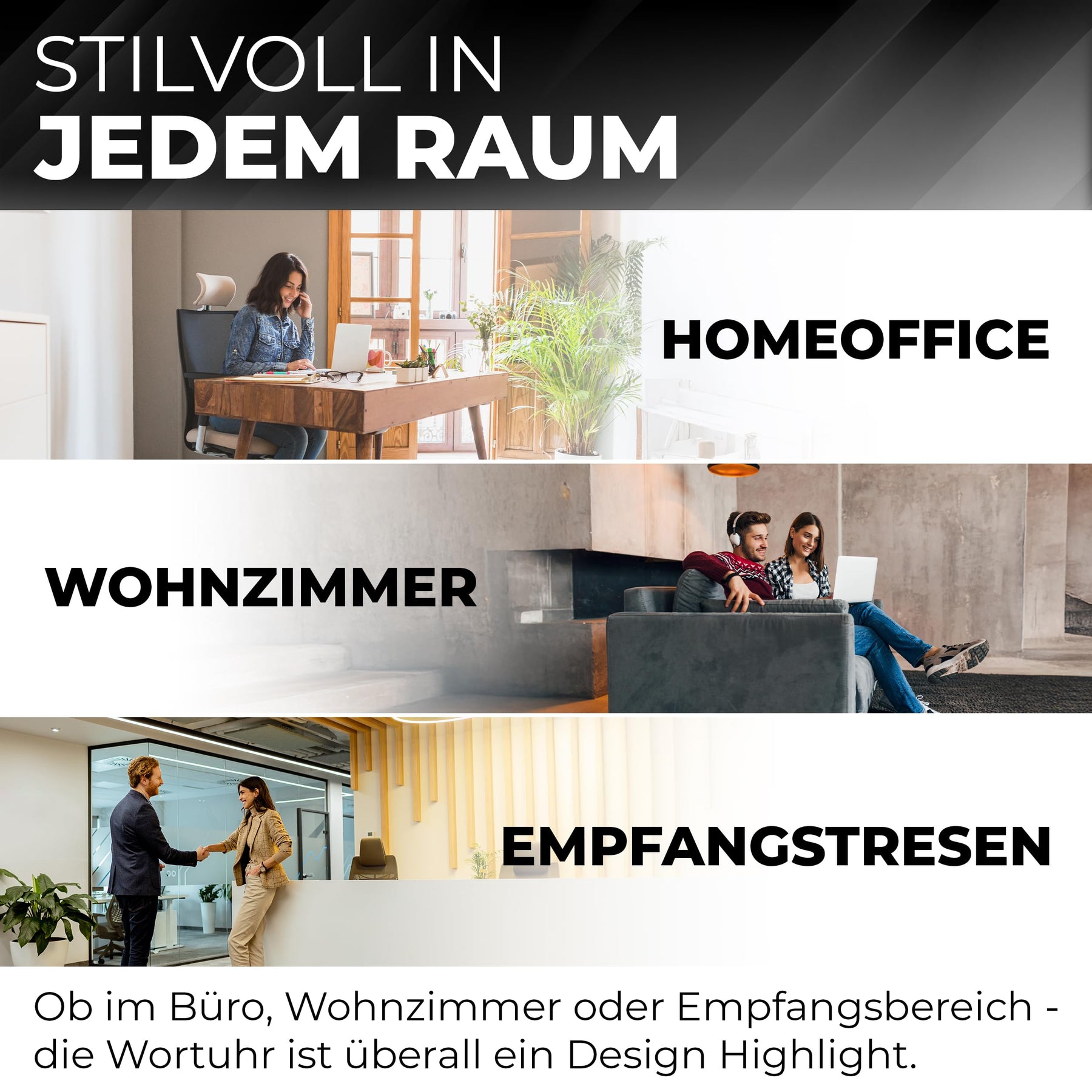 • ✨𝗙𝗟𝗘𝗫𝗜𝗕𝗟𝗘 𝗔𝗡𝗕𝗥𝗜𝗡𝗚𝗨𝗡𝗚   - Die hochwertige Wortuhr kann an der Wand hängen oder auf Möbeln wie Schreibtisch, Regal oder Fensterbank stehen, ideal als Alltagshelfer für das Homeoffice oder als Büroattraktion.